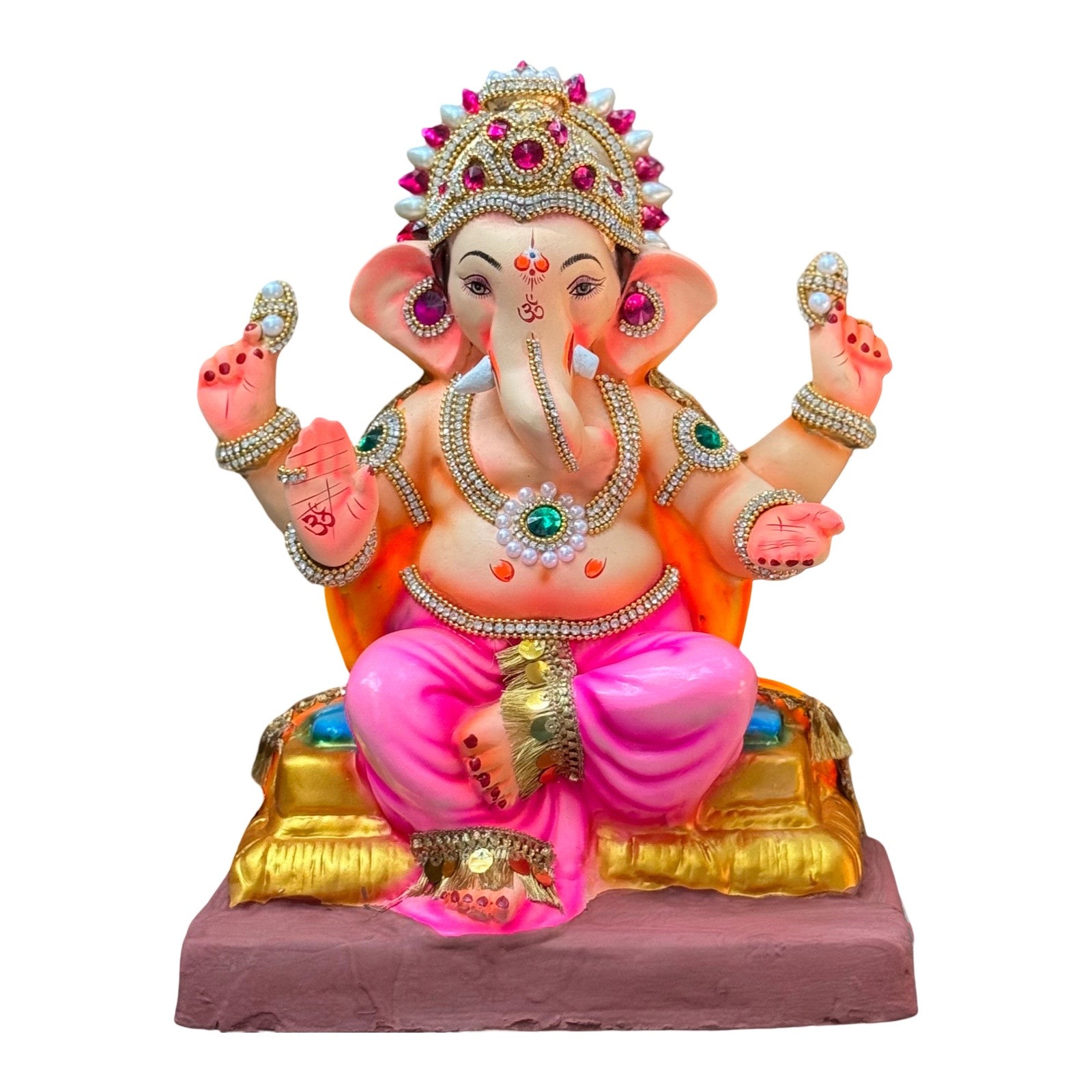 Our paper mache Ganesh idols are perfect for home immersion as they dissolve completely within 72 hours, causing no harm to marine life. With a 2-feet paper mache idol weighing only about 8 kg (compared to over 30 kg for clay idols), they are easy to courier across India and abroad, making them ideal for families celebrating Ganesh Chaturthi globally.